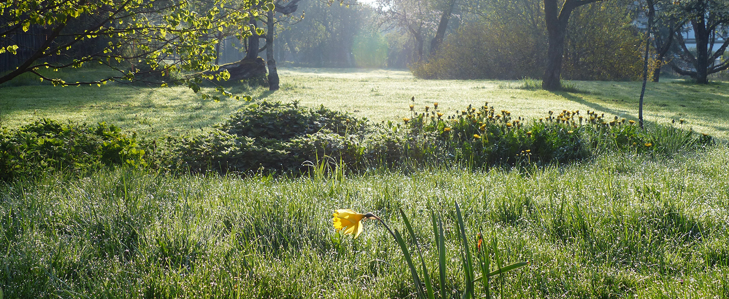 Dann fingen wir an den Garten zu gestalten, einen Weg anzulegen, Garagen, eine Terrasse nach Süden, einen Teich und einen kleinen Wintergarten. Wir konnten den ehemaligen Sandplatz für die Pferde der Nachbarn, dazu gewinnen. Heute steht dort ein Gewächshaus, ein Schildkrötengehege und ein Gartenhäuschen. Die meisten Arbeiten erledigten wir selbst und so entstand nach und nach das Paradies - denn so bezeichnen es viele, die das erste Mal hierher kommen. Es ist ein Rückzugsort, ein Sanktum für Pflanzen, Insekten, Vögel und Tiere. Anfangs habe ich noch mit der Sense gemäht, später dann doch auch mit dem Rasenmäher aber extensiv, und mittlerweile lassen selbst die mit allen erdenklichen, motorisierten Gartengeräten ausgestatteten Nachbarn auch mal eine Blumeninsel stehen.